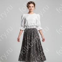 Рубаха "Василёк" выполнена из габардина белого оптического цвета. Декором косоворотки стали большие по размеру вставки из хлопка с цветочным рисунком в сине-голубом цвете и вьюн синего цвета. С Косоворотка без воротника-стойки удобна при надевании на верхнюю одежду (на зимних мероприятиях). Косоворотка "Василек" и сарафан с блузой "Гжель" подойдут для участников одного ансамбля.
