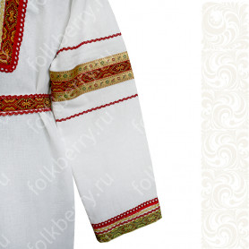 Косоворотка Русич выполнена из хлопка или габардина ( полиэстер 100%, одежная ткань) на выбор покупателя и декорирована жаккардовой тесьмой. Косоворотка в традиционном стиле, с поясом-кушаком, декор по горловине, груди, запястьям, талии, бедрам ( славяне наносили декор в тех местах, где бьется пульс). В декоре "зашиты" обережные символы здоровья, силы, удачи, процветания, принятые в Древней Руси. Декоративная тесьма смотрится очень эффектно, т. к. имеет четкий рисунок, напоминающий вышивку крестом.