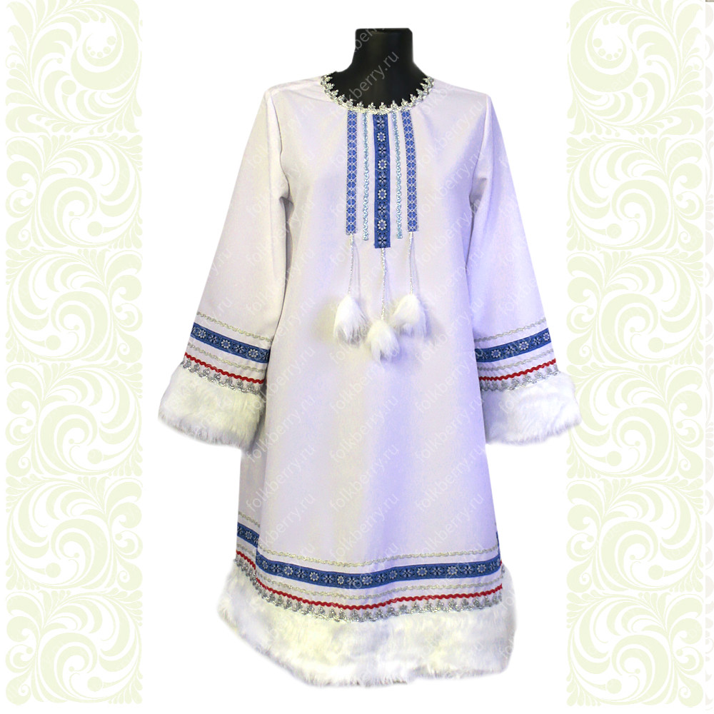 Карнавальный костюм Снегурочки состоит из шубки и головного убора.
