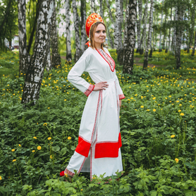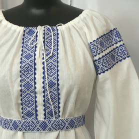 Платье Дмитра голубое - символ неба, реки, цветов России– отличный вариант наряда для в современном руссом стиле.