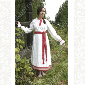 Платье «Солдатка» отрезное по талии, рукав реглан, юбка-почти солнце, длиной немного ниже колена. В комплект входит пояс. Важно, что декор платья выдержан в славянском стиле. Это платье - современное прочтение народных традиций. Женственное, удобное и нарядное, оно дарит ощущение радости и праздника. По стилю замечательно подходит для тематических праздников в детских учебных заведениях, по фасону и яркости цветов отлично подойдет для танцевальных коллективов. как правило, дети не стесняются надевать его ( в отличии от длинного русского сарафана ) Платье выполнено из немнущейся, матовой ткани "габардин" символичных для славян цветов ( красного, синего, зеленого, бордового).