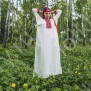 Рубаха женская "Славянская" удобная, красивая одежда, которая прошла проверку временем, потому что носили их женщины и девушки с незапамятных времен. Длинную рубаху надевали с сарафаном, с юбкой-поневой, с фартуком или носили отдельно как самостоятельный наряд. Рубаха с поликами, длинная, по бокам разрезы 30-40 см, выполнена из небеленого или белого льна, украшена декоративной тканной лентой шириной 5 см, с поясом в цвет декора. Для усиления образа, можно с рубахой надевать славянский традиционный тканный пояс и очелье ( повязка на голову)