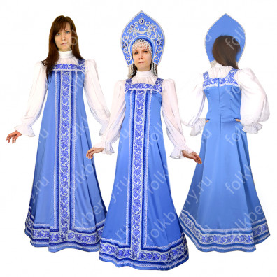 Сарафан с блузой «Снежана» будет хорош для тематических славянских мероприятий, национальных праздников, выступлений театральных и народных коллективов.